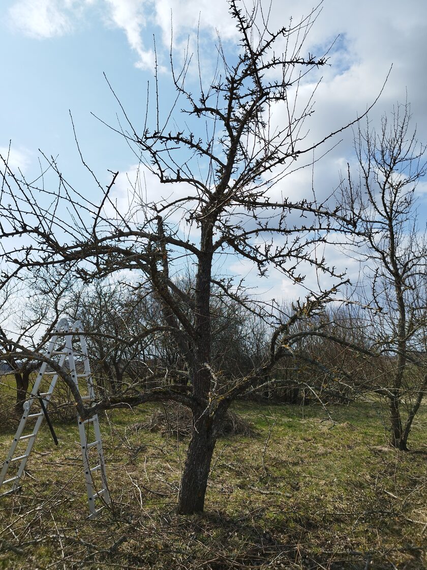 Šeit uzskatāmi redzams, kādi ir augļu koki pirms un pēc apgriešanas.